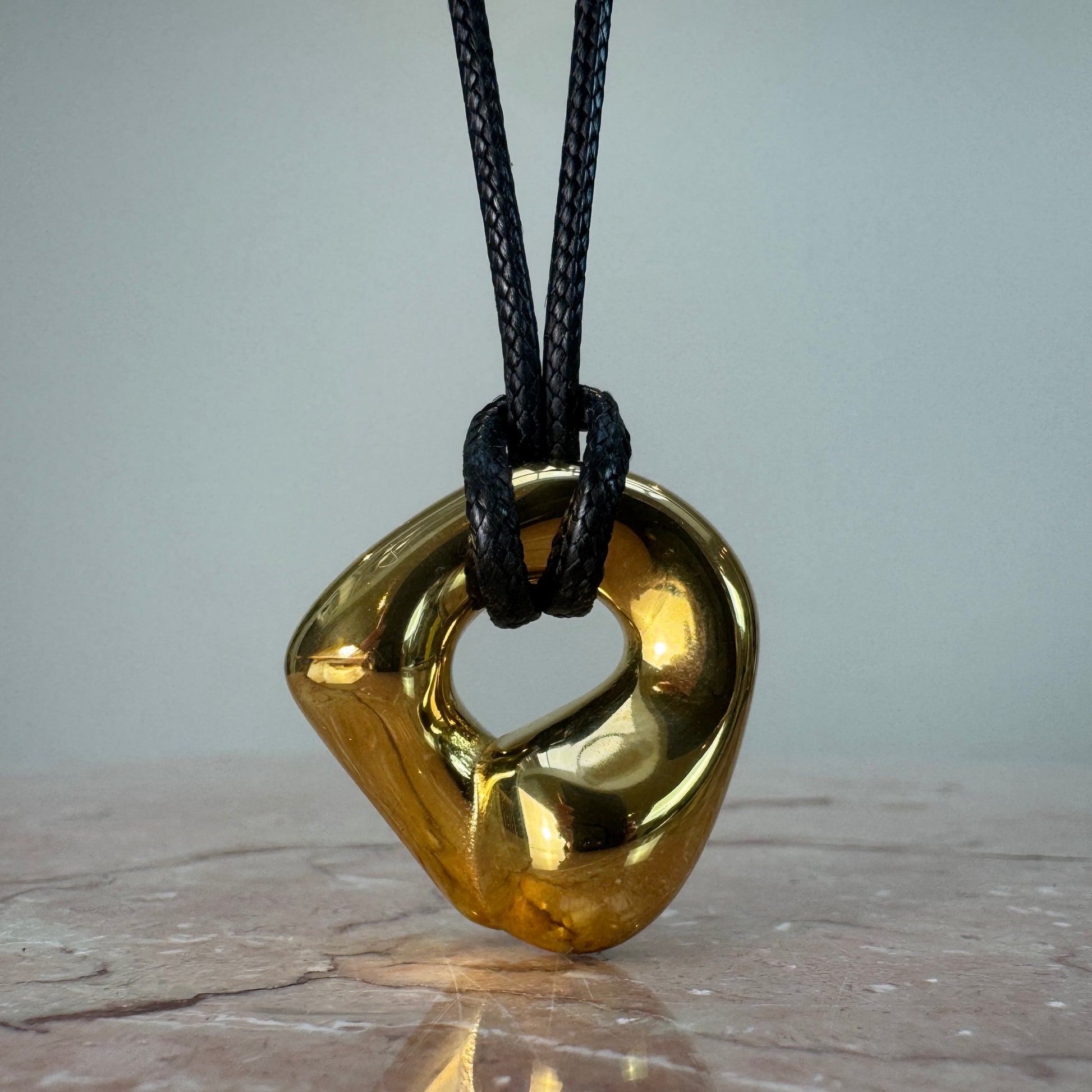 Molten nugget pendant on a black waxxed adjustable cord in either silver stainless steel or 18k gold plated stainless steel.